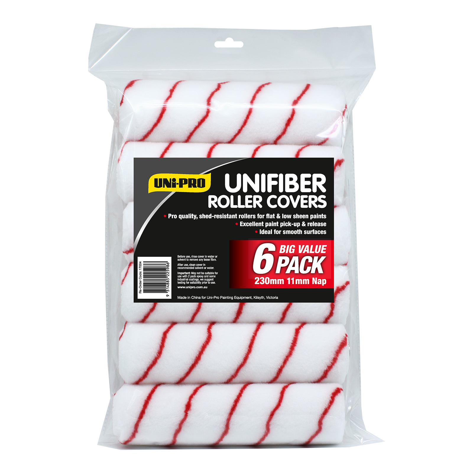 Uni-Pro 230mm Unifiber Roller Covers 11mm Nap 6 Pack 17004